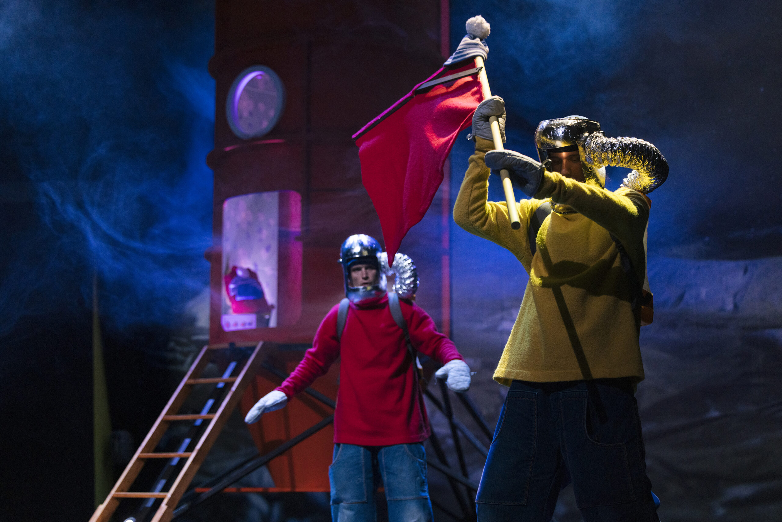 Buurman & Buurman bouwen een raket en ruimtepakken om naar de maan te gaan. De hele zaal helpt mee in dit vrolijke, fantasievolle avontuur voor kinderen vanaf 4 jaar.