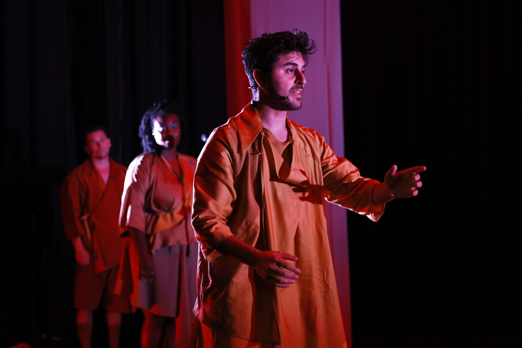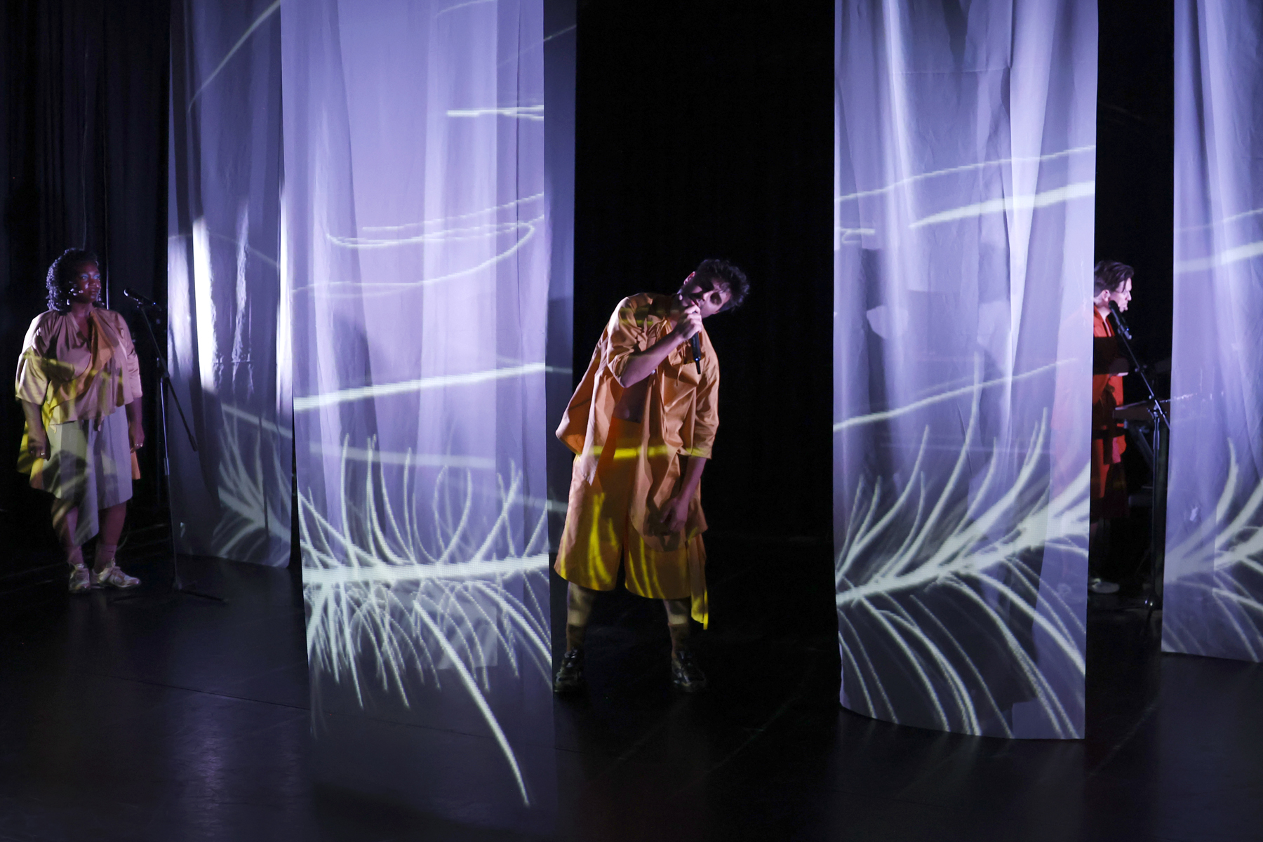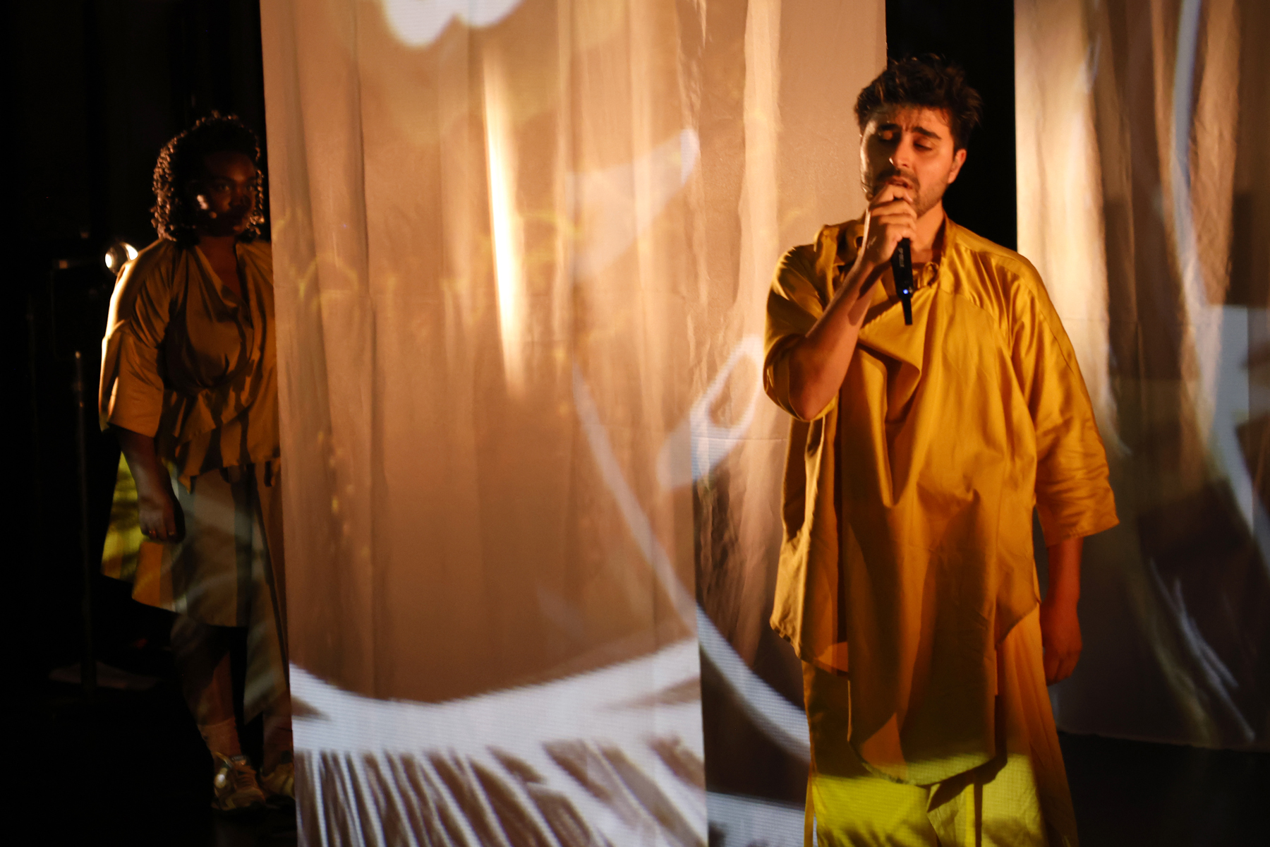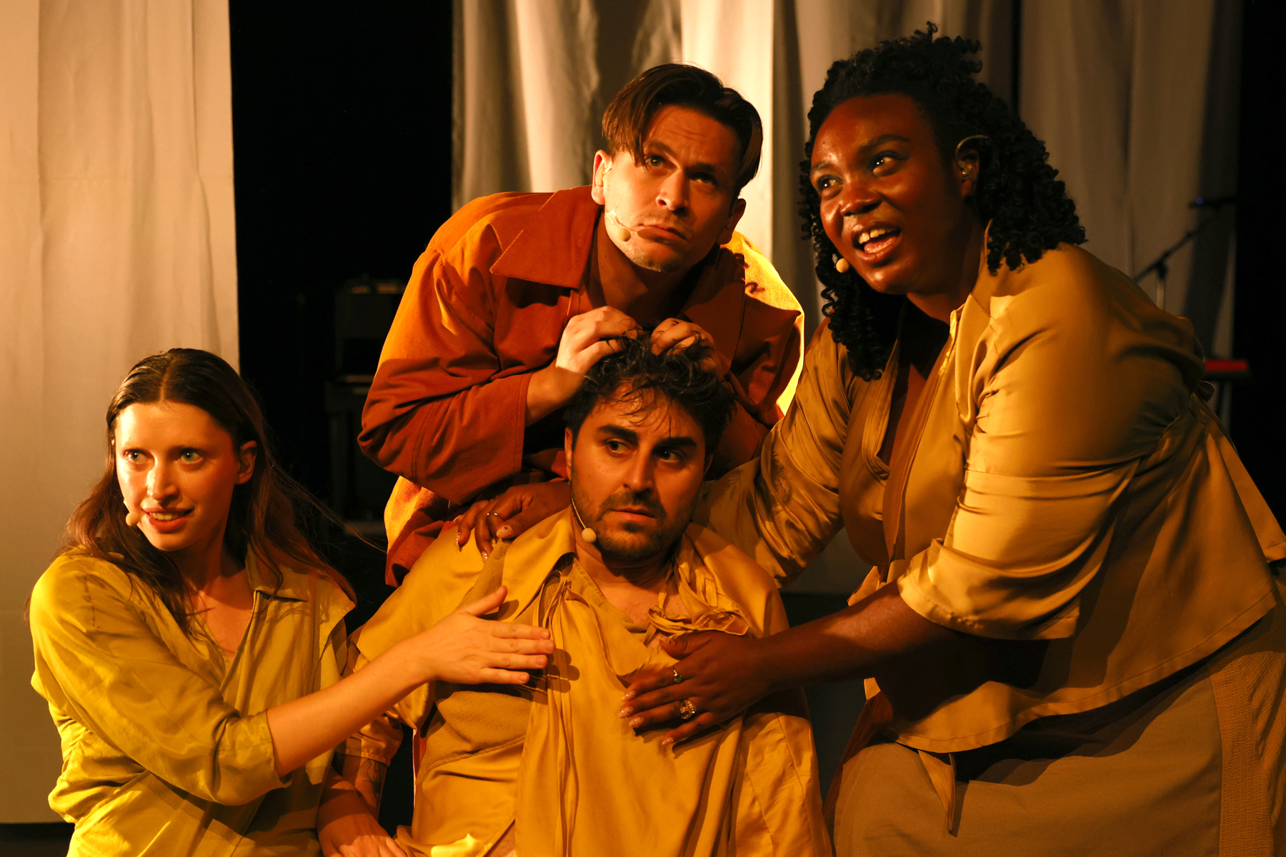 Met ‘We Sleep Among Demons’ brengt Club Gewalt een muzikale performance over het beest in de bek en de angst in de ogen durven te kijken. In een concert voor duiveluitdrijving killjoyt clublid Amir Vahidi zijn eigen ongemak om in het centrum van de aandacht te staan. Als in een koortsdroom gaat hij de strijd aan met de innerlijke demonen die zijn blik op de realiteit vormgeven. De duivelse stem van een moeder die zegt dat hij niet kwaad mag zijn? Verdreven. De stem van de racistische bouncer die hem vertelt niet in de club te horen? Weggestuurd. Zijn witte kunstenaarscollectief dat zijn artistieke stem niet serieus neemt? Uitgerookt. Maar wat doe je met je eigen stem als die je bij elke mogelijkheid de grond in boort en je het liefst bij de enkels afbreekt?