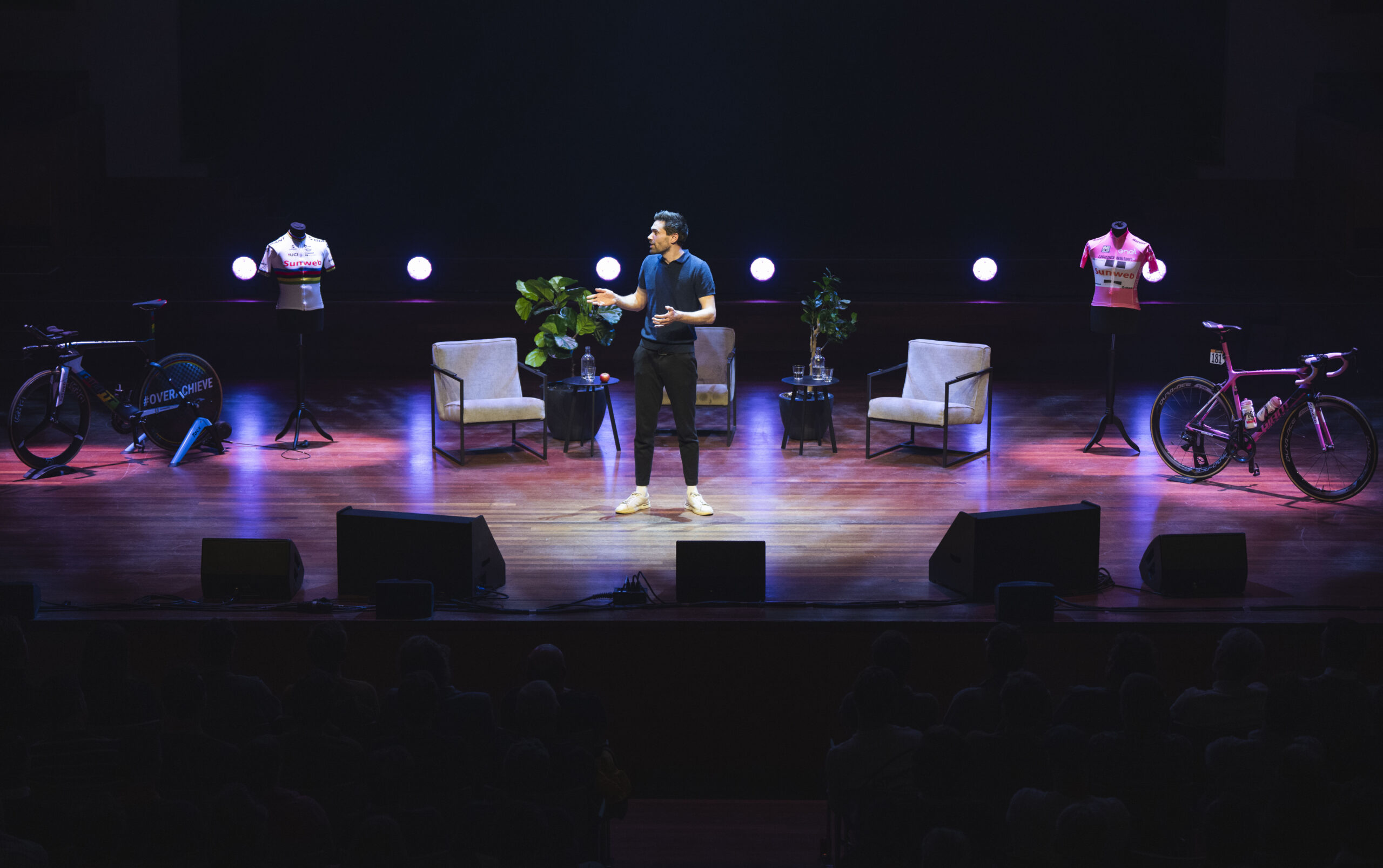 Deze theateravond met Tom Dumoulin zit vol met prachtige wielerverhalen en leerzame inzichten over de toppen en dalen van het wielrennen en het leven.